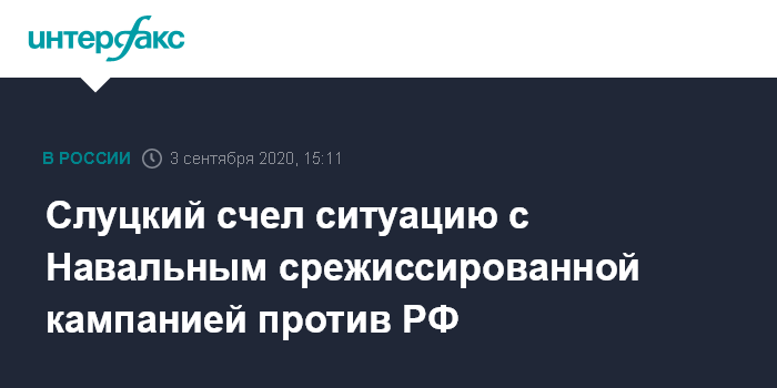 Слуцкий счел ситуацию с Навальным срежиссированной кампанией против РФ