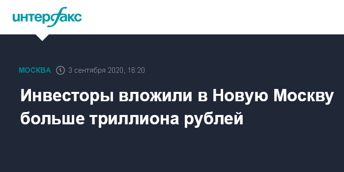 Москва. 3 сентября. INTERFAX.RU - Частные инвесторы вложили в развитие Новой Москвы к настоящему времени около 1,1 трлн рублей, сообщил заммэра столицы по вопросам градостроительной политики и строительства Андрей Бочкарев.