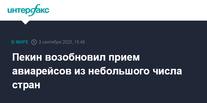 Москва. 3 сентября. INTERFAX.RU - Аэропорт Пекина в четверг возобновил прием авиарейсов из небольшого числа избранных государств после полугодичного перерыва.