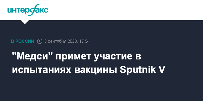 Москва. 3 сентября. INTERFAX.RU - Частный диагностический центр Медси" в Москве будет участвовать в испытаниях вакцины Sputnik V от коронавируса, сообщили в пресс-службе клиники. Участие "Медси" одобрено.