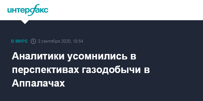 Москва. 3 сентября. INTERFAX.RU - Принятое в июне решение об отмене строительства газопровода Atlantic Coast Pipeline (ACP) ставит вопросы о перспективах добычи природного газа в США, считает консалтинговая компания McKinsey & Company.