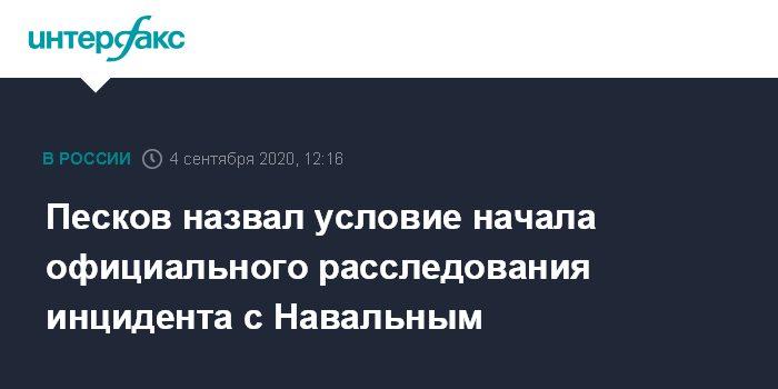 Песков назвал условие начала официального расследования инцидента с Навальным