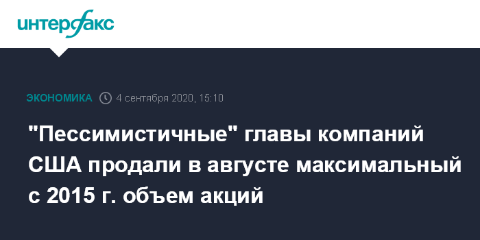"Пессимистичные" главы компаний США продали в августе максимальный с 2015 г. объем акций