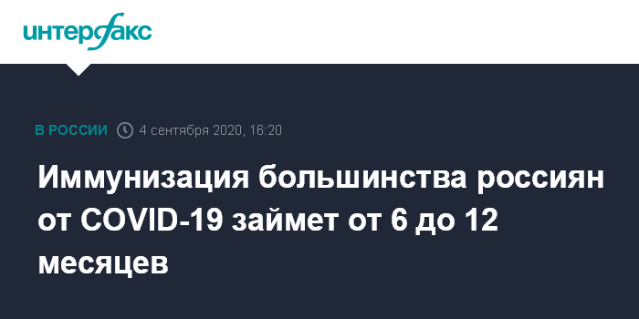 Иммунизация большинства россиян от COVID-19 займет от 6 до 12 месяцев
