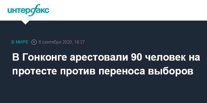 Москва. 6 сентября. INTERFAX.RU - Полиция Гонконга в воскресенье арестовала не менее 90 человек, вышедших на акции протеста из-за переноса выборов в законодательное собрание Гонконга, сообщает агентство Associated Press.