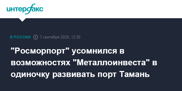 "Росморпорт" усомнился в возможностях "Металлоинвеста" в одиночку развивать порт Тамань