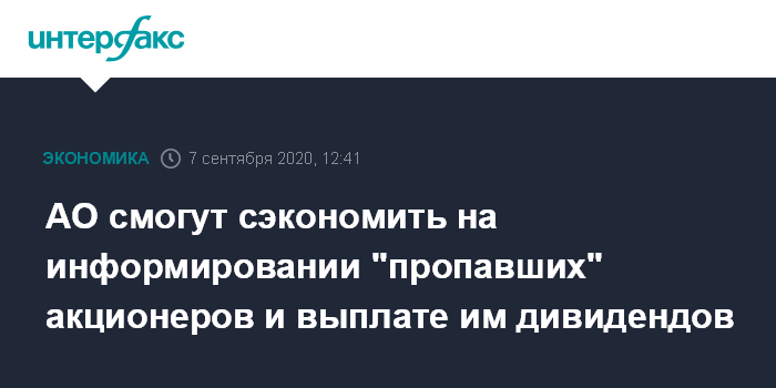 АО смогут сэкономить на информировании "пропавших" акционеров и выплате им дивидендов