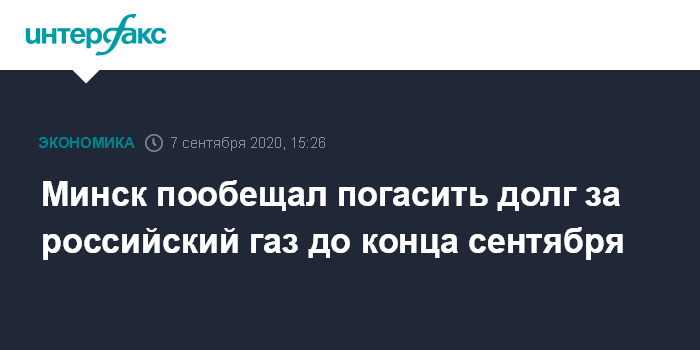 Москва. 7 сентября. INTERFAX.RU - Москва и Минск договорились о погашении задолженности за поставки газа в течение сентября, сообщил журналистам министр энергетики России Александр Новак.