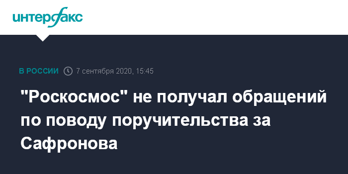 "Роскосмос" не получал обращений по поводу поручительства за Сафронова