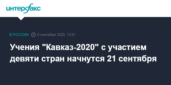 Учения "Кавказ-2020" с участием девяти стран начнутся 21 сентября