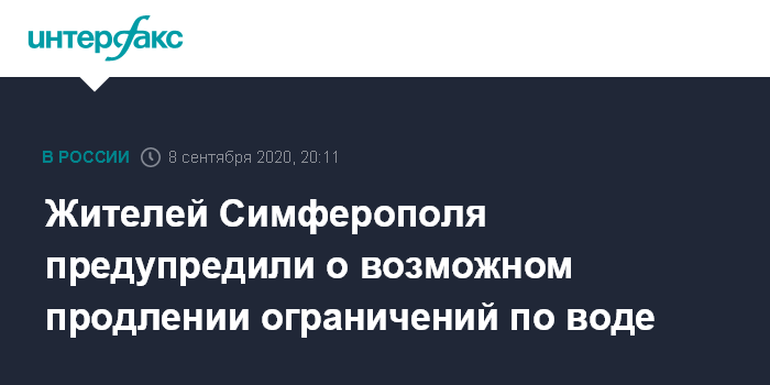 С 24 августа в Симферополе с населением 350 тыс. человек и в 39 ближайших населенных пунктах начали поэтапно ограничивать подачу воды: в течение трех недель потребление снизили на треть. Для всех районов разработаны графики, большинство жителей могут пользоваться центральным водоснабжением по несколько часов утром и вечером.