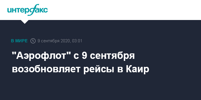 Москва. 9 сентября. INTERFAX.RU - "Аэрофлот" с 9 сентября возобновляет регулярные рейсы из Москвы в Каир.