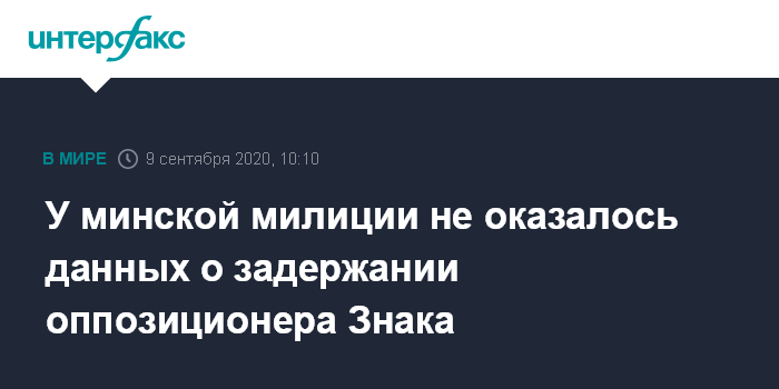 Москва. 9 сентября. INTERFAX.RU - Пресс-служба ГУВД Мингорисполкома не располагает информацией о задержании члена президиума белорусского Координационного совета оппозиции Максима Знака.