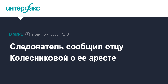 Следователь сообщил отцу Колесниковой о ее аресте