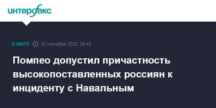 Помпео допустил причастность высокопоставленных россиян к инциденту с Навальным