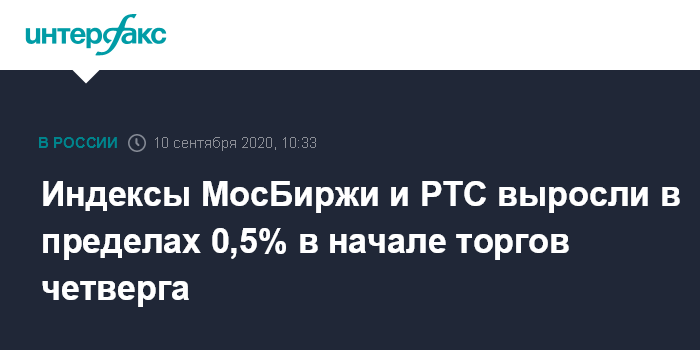 Индексы МосБиржи и РТС выросли в пределах 0,5% в начале торгов четверга