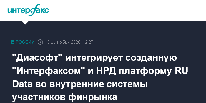 "Диасофт" интегрирует созданную "Интерфаксом" и НРД платформу RU Data во внутренние системы участников финрынка