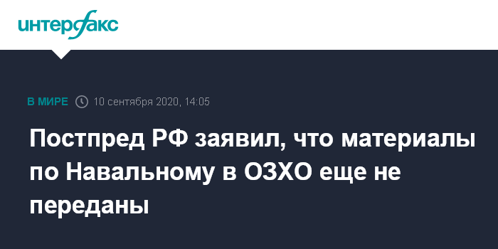 Постпред РФ заявил, что материалы по Навальному в ОЗХО еще не переданы