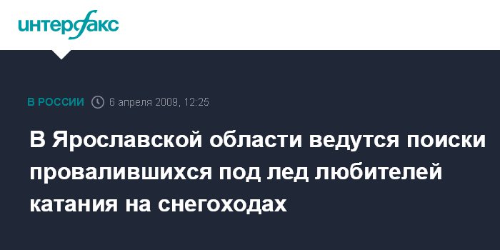 Москва. 6 апреля. INTERFAX.RU - В Ярославской области продолжаются поиски двух человек, провалившихся в воскресенье на снегоходах под волжский лед, сообщили "Интерфаксу" в понедельник в отделении пропаганды и связи с общественностью ГУ МЧС России по региону.