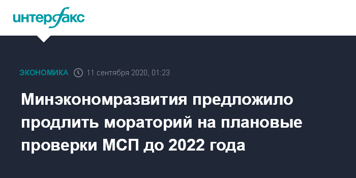 Москва. 11 сентября. INTERFAX.RU - Минэкономразвития РФ подготовило законопроект о продлении моратория на плановые проверки малого бизнеса до конца 2021 года, говорится в сообщении ведомства.