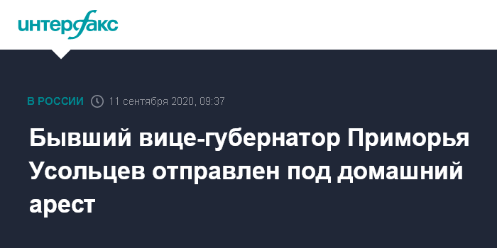 Москва. 11 сентября. INTERFAX.RU - Суд отправил под домашний арест бывшего первого вице-губернатора Приморского края Василия Усольцева, который подозревается в "отмывании" более 143,5 млн рублей.