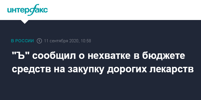 Москва. 11 сентября. INTERFAX.RU - На закупки дорогостоящих лекарств в РФ не хватает средств из федерального бюджета, поэтому Минздраву приходится выдвигать дополнительные требования при расширении списка таких препаратов - в частности, ограничивать число пациентов, которые могут бесплатно получить их, пишет в пятницу "Коммерсантъ" со ссылкой на письмо министерства руководителям органов исполнительной власти субъектов РФ.