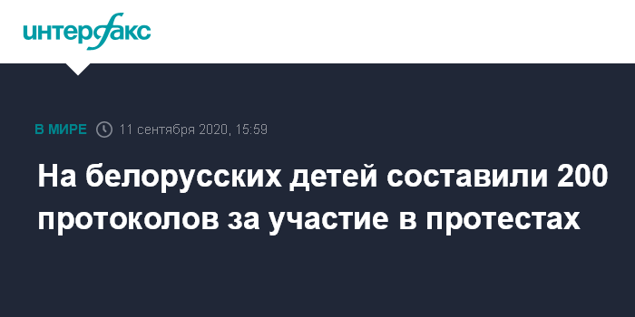 Москва. 11 сентября. INTERFAX.RU - Более 200 административных протоколов составлено на детей по делам об участии в массовых беспорядках в Белоруссии, сообщил заместитель генпрокурора Алексей Стука, чьи слова приводит в пятницу госагентство БелТА.