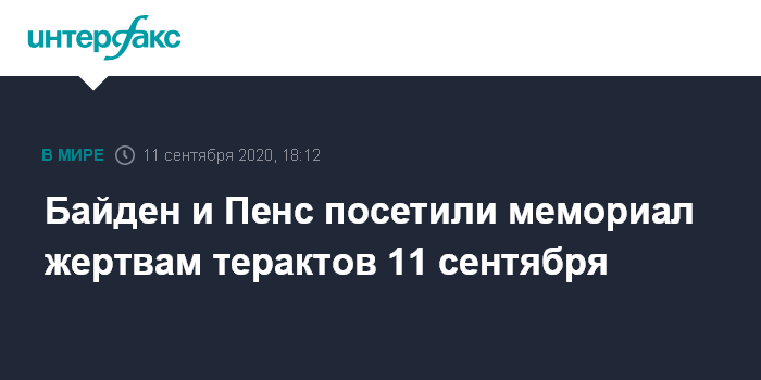 Москва. 11 сентября. INTERFAX.RU - Кандидат в президенты США от Демократической партии Джо Байден и вице-президент Майкл Пенс в одно и то же время посетили Национальный мемориал и музей 11 сентября в Нью-Йорке, сообщают местные СМИ.