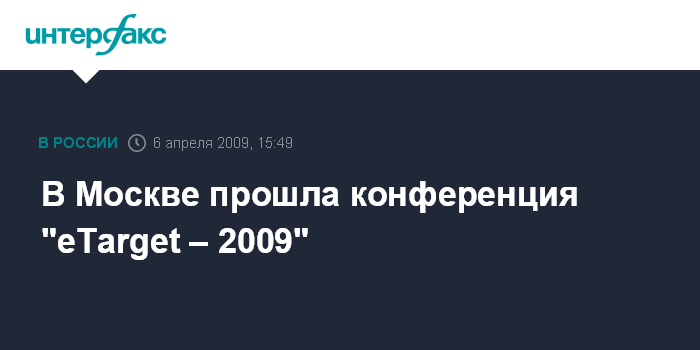 Москва. 6 апреля. INTERFAX.RU - В Москве состоялась V ежегодная конференция "eTarget-2009: Управление аудиторией и реклама в Интернете".
