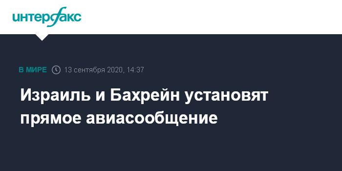 Москва. 13 сентября. INTERFAX.RU - Между Израилем и Бахрейном, в результате нормализации отношений будет установлено прямое воздушное сообщение, сообщил премьер-министр Израиля Биньямин Нетаньяху.