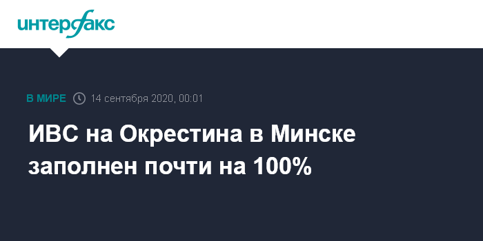 Москва. 14 сентября. INTERFAX.RU - В изоляторе временного содержания на улице Окрестина в Минске почти стопроцентная наполняемость - из 110 койкомест в субботу были заняты 109.