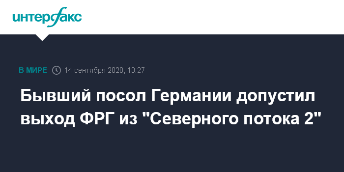 Москва. 14 сентября. INTERFAX.RU - Германия может выйти из проекта газопровода "Северный поток 2", если Россия не будет сотрудничать в расследовании случившегося с Алексеем Навальным, считает Рюдигер фон Фрич, который с 2014 по 2019 годы был послом ФРГ в Москве. Он сказал это Deutsche Welle.