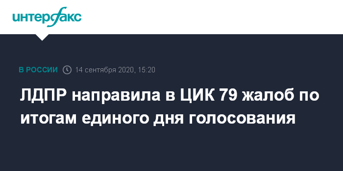 Москва. 14 сентября. INTERFAX.RU - ЛДПР направила в ЦИК РФ 79 жалоб о нарушениях по итогам единого дня голосования, заявил в понедельник лидер партии Владимир Жириновский.