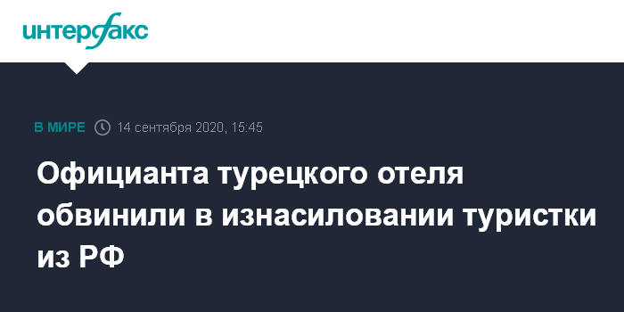 Москва. 14 сентября. INTERFAX.RU - Пятнадцатилетняя туристка из России обвинила официанта 5-звездочного отеля в турецкой Анталье в изнасиловании, сообщает газета Hurriyet.