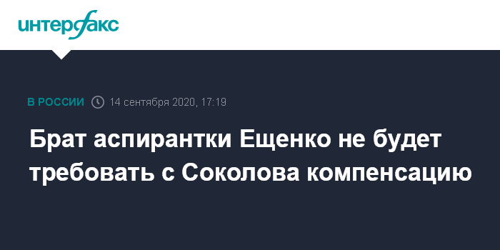 Брат аспирантки Ещенко не будет требовать с Соколова компенсацию