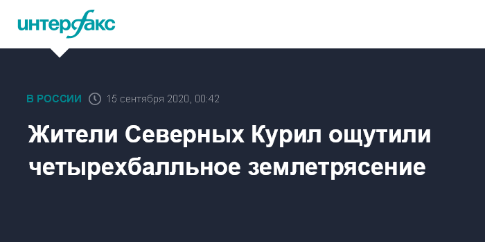 Москва. 15 сентября. INTERFAX.RU - Сейсмологи зарегистрировали землетрясение магнитудой 4,7, произошедшее в Тихом океане у Курильских островов, сообщили "Интерфаксу" в Сахалинском филиале Геофизической службы Российской академии наук (РАН).