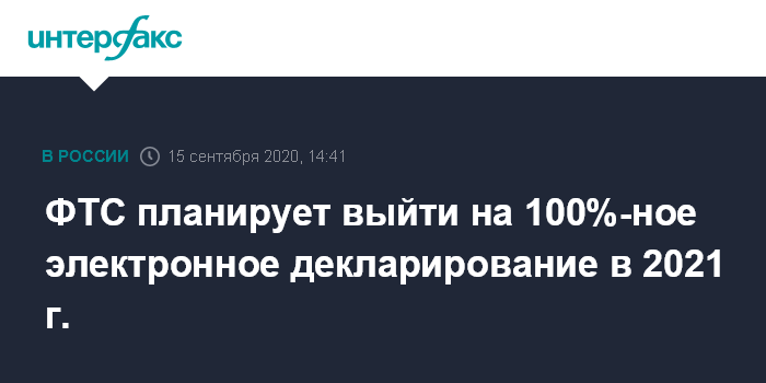 Москва. 15 сентября. INTERFAX.RU - Федеральная таможенная служба (ФТС) в 2021 году планирует оформлять в электронном виде 100% деклараций, сообщил глава ФТС Владимир Булавин журналистам.