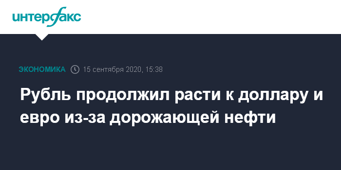 Как отмечают эксперты "Интерфакс-ЦЭА", рубль умеренно подрастает к доллару и евро на дневных торгах на фоне развернувшейся вверх нефти. При этом трейдеры постепенно переходят в режим ожидания заседания Федеральной резервной системы (ФРС), которая 15-16 сентября проводит первое заседание с момента одобрения новой долгосрочной стратегии в конце августа.
