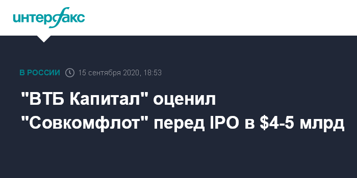 Москва. 15 сентября. INTERFAX.RU - "ВТБ Капитал", один из организаторов предстоящего IPO "Совкомфлотп", оценил стоимость компании по методу дисконтированных денежных потоков (DCF) в коридоре от $4 млрд до $4,995 млрд, сообщили "Интерфаксу" два источника, знакомых с расчетами инвестбанка.