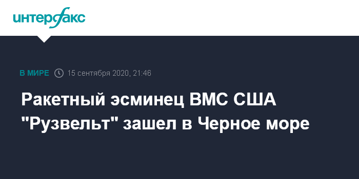 Москва. 15 сентября. INTERFAX.RU - Американский ракетный эсминец USS Roosevelt (DDG-80) во вторник вечером вошел в акваторию Черного моря. Об этом сообщили турецкие сайты, публикующие фотографии его прохождения через пролив Босфор.