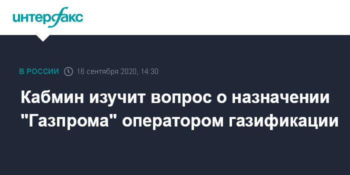 Кабмин изучит вопрос о назначении "Газпрома" оператором газификации