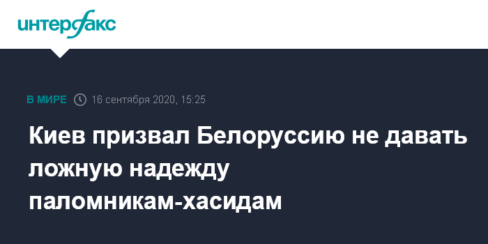 Москва. 16 сентября. INTERFAX.RU - В Офисе президента Украины призвали власти Белоруссии прекратить создавать дополнительное напряжение на совместной границе и не распространять ложные обнадеживающие заявления для паломников-хасидов, которые могут создать у них ощущение, что граница Украины все же может быть открыта для иностранцев.