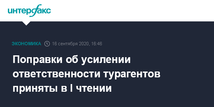 Москва. 16 сентября. INTERFAX.RU - Госдума в среду в первом чтении поддержала поправки к законопроекту об усилении ответственности турагентов.