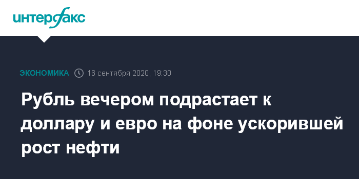 Как отмечают эксперты "Интерфакс-ЦЭА", рубль продолжает умеренно подрастать к доллару и евро на вечерних торгах на фоне усилившей рост нефти. Поддержку нацвалюте в ходе торгов среды также оказывали старт налогового периода сентября и аукционы Минфина РФ по первичному размещению ОФЗ.