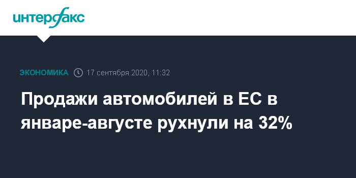 Москва. 17 сентября. INTERFAX.RU - Продажи автомобилей в Европейском союзе в январе-августе рухнули на 32% относительно аналогичного периода прошлого года, восстановление авторынка проходит нестабильно.