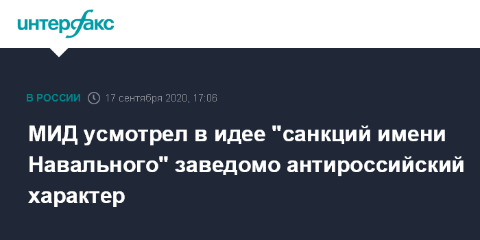 15 сентября глава дипломатии ЕС Жозеп Боррель заявил, что идет работа над режимом санкций за нарушения прав человека и гуманитарного права. Этот режим могут назвать именем Навального. Боррель также заявил, что произошедшее с Навальным следует называть "попыткой убийства". Оппозиционера сейчас лечат в берлинской клинике Charite. Власти ФРГ убеждены, что политика отравили ядом из группы "Новичок".