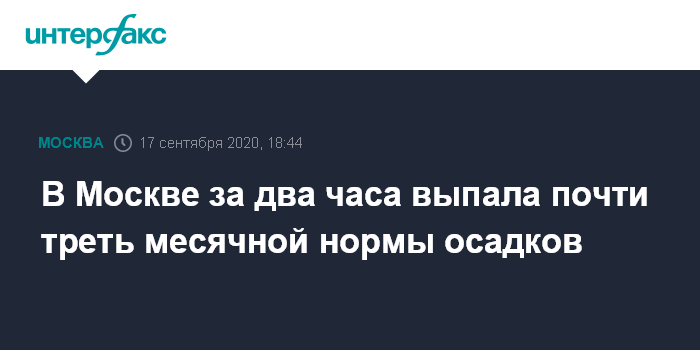 Больше всего осадков выпало в Центральном (20 мм), Северо-Западном (20 мм), Северном (18 мм) и Зеленоградском (16 мм) административных округах. Месячная норма осадков для сентября в Москве составляет 65 мм.