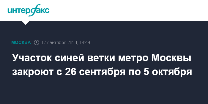 Участок синей ветки метро Москвы закроют с 26 сентября по 5 октября