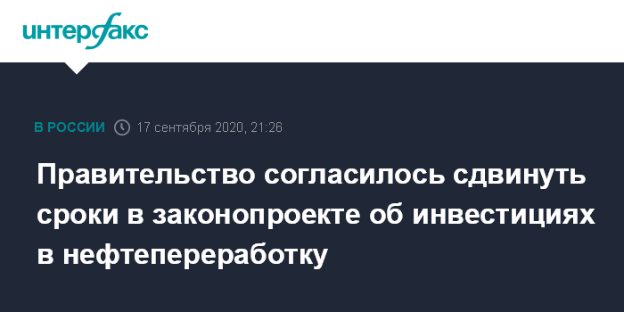 Правительство согласилось сдвинуть сроки в законопроекте об инвестициях в нефтепереработку