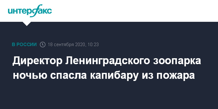 Москва. 18 сентября. INTERFAX.RU - Директор Лениградского зоопарка ночью спасла капибару во время пожара, сообщила пресс-служба петербургского комитета по культуре.